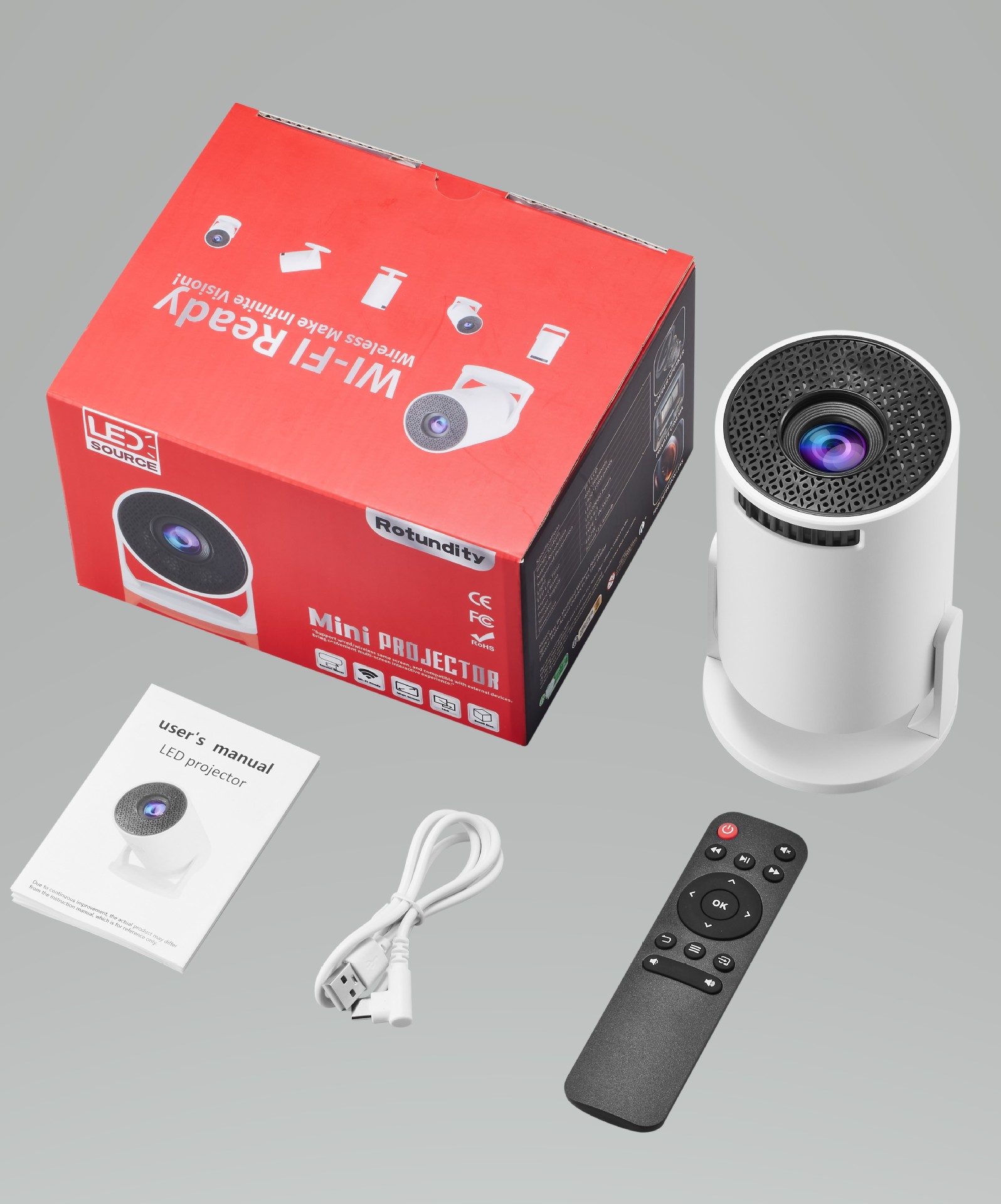 Accessories: Color box + foam +USB power cable + instruction manual + remote control